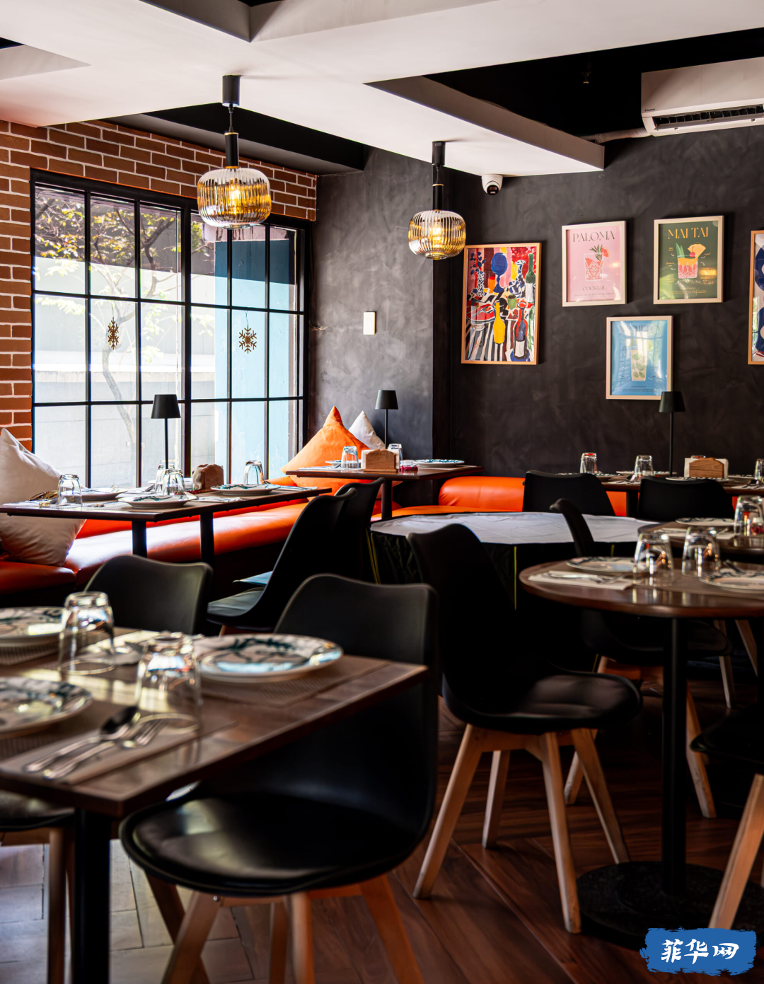 红砖墙、亮色装饰让空间既温暖又热闹,很适合朋友聚餐或下班后小酌。