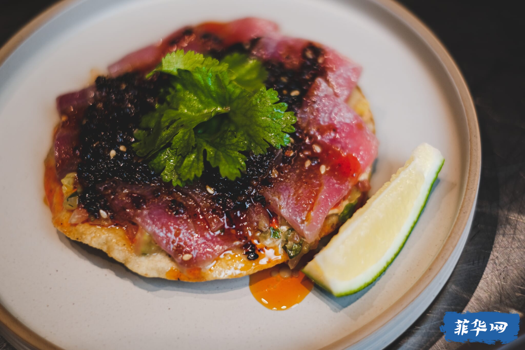 这里走的是 fine-casual(高品质但不拘束) 路线,强调新鲜食材与创意搭配。招牌 金枪鱼Tostada 清爽又有层次,而用和牛脸颊肉制作的 Campechano Taco,搭配辣味十足的 salsa arbol,是不少老饕的心头好。