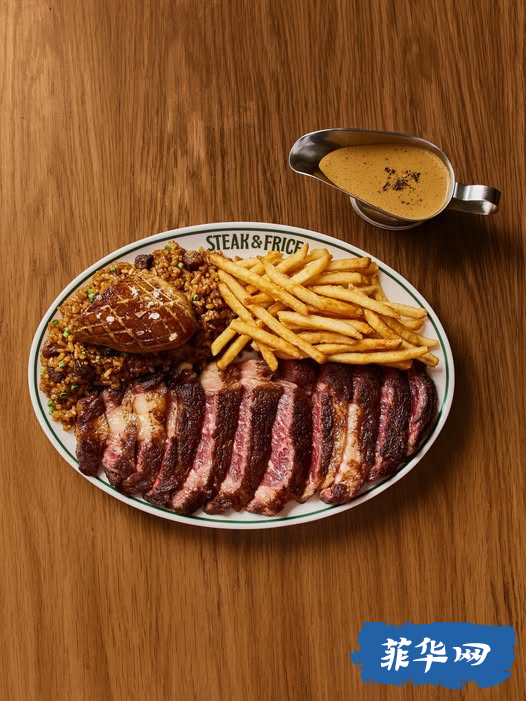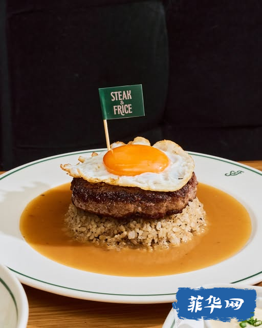 灵感源自 Jollibee 曾推出的 Ultimate Burger Steak,这里将其升级为更豪华的版本:8盎司安格斯肋眼牛肉汉堡排,搭配松露蘑菇饭和泰式风味煎蛋,蛋黄流淌在米饭与肉汁之间,画面感十足。