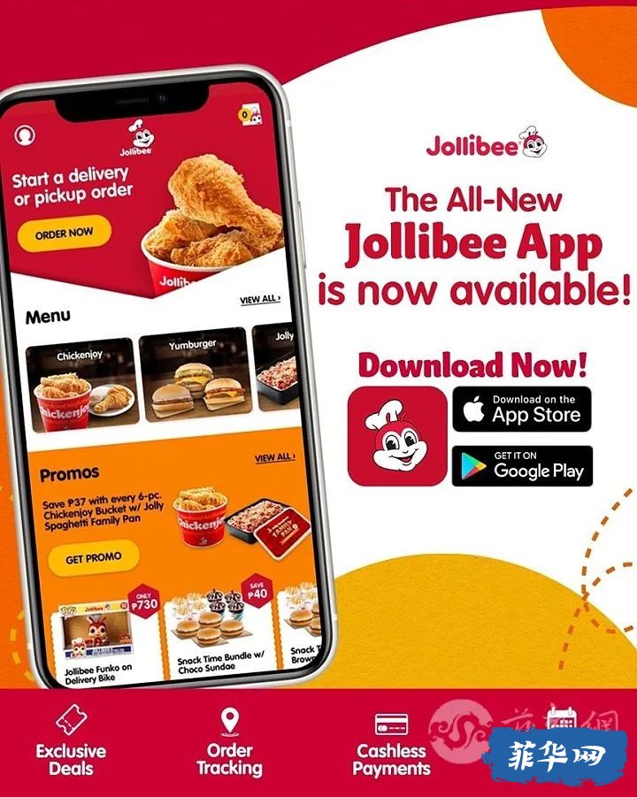 或者通过 Jollibee 应用程序、JollibeeDelivery.com、#87000、GrabFood 和 Foodpanda下单,价格从 P40 起,美味又实惠!