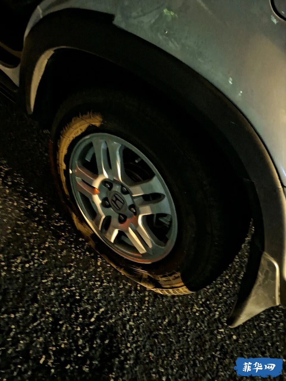 后来一问才知道,原来是车子转弯时,有点急,开到了路牙上面去了,然后就爆胎了。