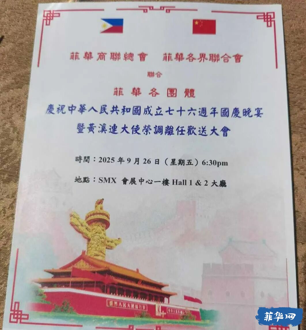 每年的10月1日前,菲华商联总会和菲华各界联合会都会和菲律宾华人社会的各个团体在SMX会议中心举办庆祝中国国庆。