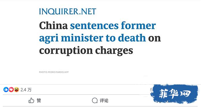 9月29日上午,菲律宾《问询者报》脸书账号转发了一条中国反腐的新闻,内容是中国前农业部长唐仁健因受贿罪被判处死缓。这样一条普通的、在中国司空见惯的“打老虎”的新闻没想到瞬间引爆菲律宾网络:一个小时内就有2.4万人点赞,6千多人留言,1万多次转发。