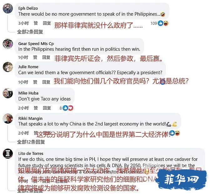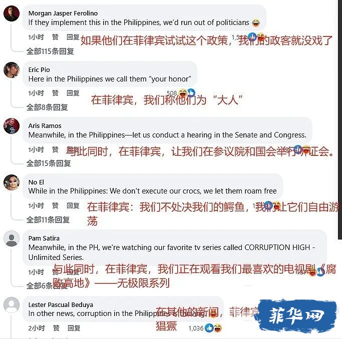 在留言中,大多数的菲律宾网友都在讽刺、挖苦当下菲律宾正在发生的腐败案,但从文字中也能看出他们深深的无奈。目前菲律宾揭露出来的腐败案件,数额巨大,情节恶劣(如幽灵项目),但是百姓们上街也上了,但后续的反应似乎没有想象中的那么强烈,有一种“过了就过了”的即视感。