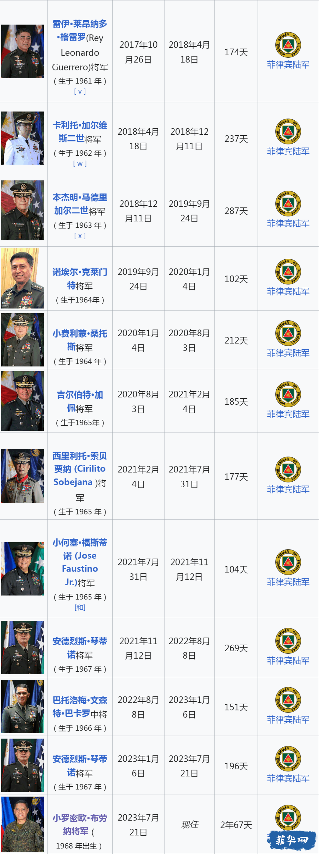 小编此前曾多次说过,军方参谋总长和警察总长是菲律宾更换频率最高的两个职务。上一任警察总长居然仅仅就职两个月就被免职了。参见前文每个中国人都应该开香槟放烟花庆祝!——为什么小马科斯忠狗会被从警察总长的位置上撵下去?那个按月领郭华萍领高工资并协助其潜逃的菲律宾警察总长是谁?而这位布劳纳居然能够绝无仅有地担任参谋总长超过两年,这在菲律宾简直是不可想象的。