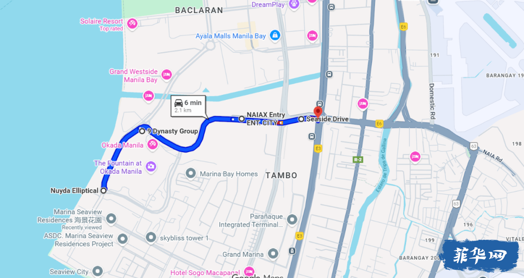 稍微多提几句,不曾在周边生活过的小伙伴们就会对这里大致有个概念。从新滨海街向南50米,就是臭名昭著的海景花园小区(Marina Seaview Residences)。参见前文又是海景花园!——2中国人以协助办理菲律宾签证为由诈骗并敲诈勒索同胞百万被抓、1中国人马尼拉遭绑架中枪,3余年前绑匪张小龙在附近喋血陨命、谈生意、换汇为饵?——马尼拉受害人拼着脚中枪流血,也没让中国籍绑匪得逞。