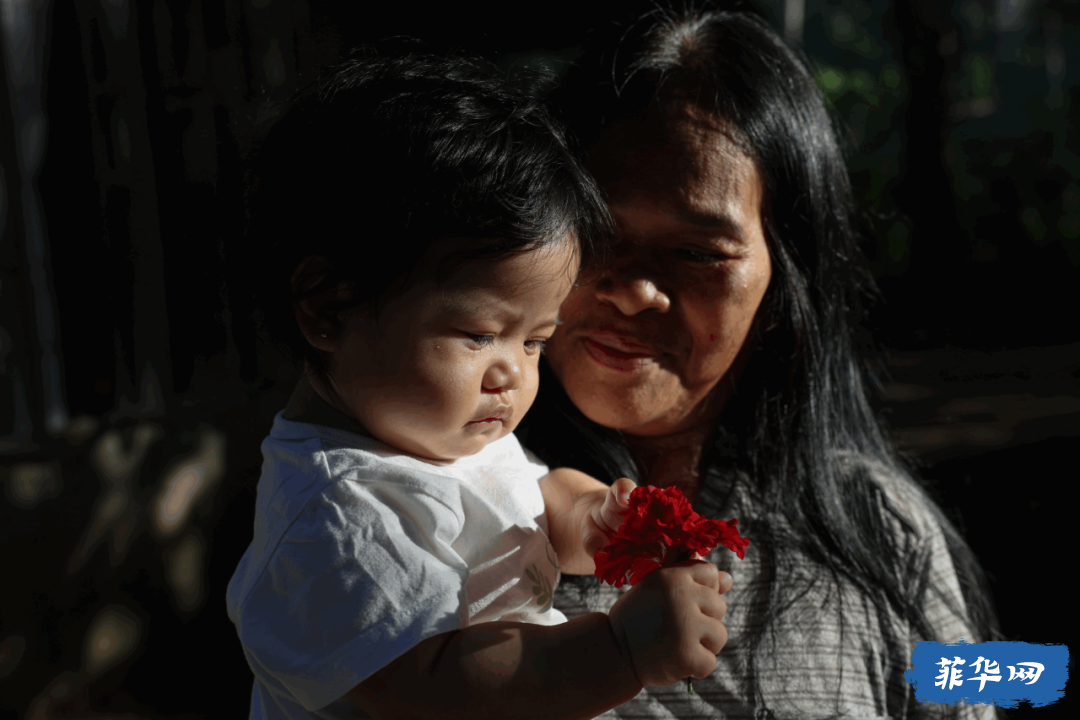 2025年3月15日,菲律宾吕宋岛伊罗辛,杜哈帕59岁的母亲黛西(Daisy)在清晨的阳光下抱着她的孙女奎因。