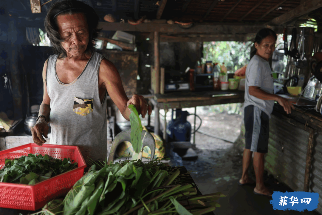 2025年3月13日,在菲律宾吕宋岛伊罗辛的家中厨房里,65岁的马塞利诺·杜哈帕(Marcelino Duhapa)正在准备从自家农场采摘的荷叶,以便女儿带回台湾烹饪。他是玛丽安的父亲。