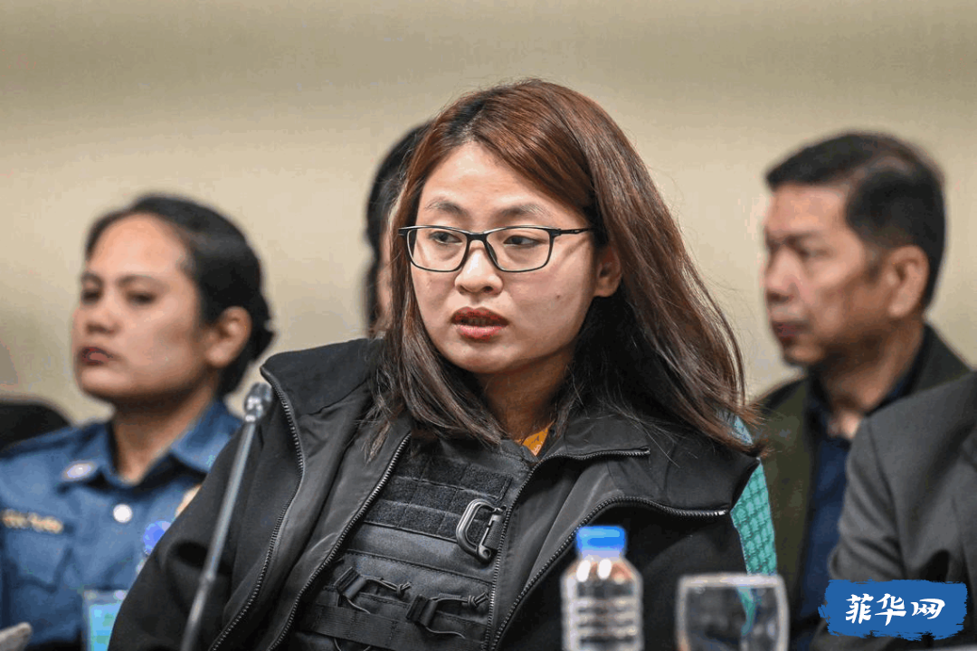 身着防弹背心的郭华萍于2024年9月出席菲律宾参议院关于人口贩卖指控的听证会。