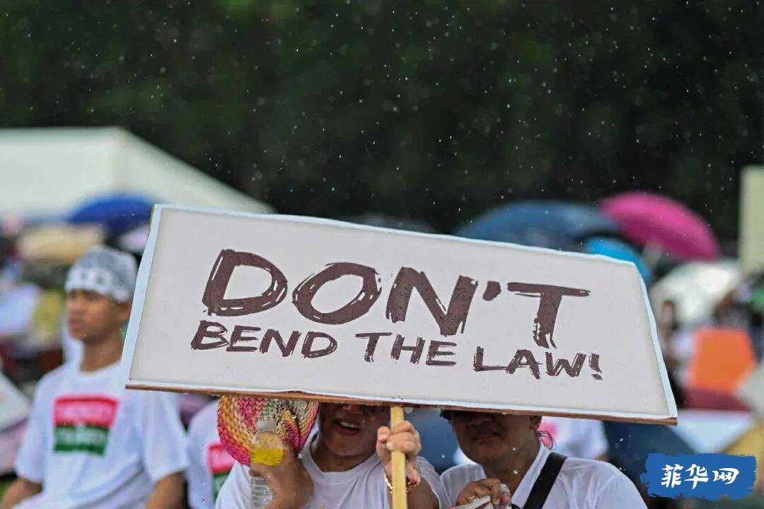 16日,在菲律宾马尼拉黎刹公园举行的反腐败抗议活动中,一名基督堂教会成员举着标语。
