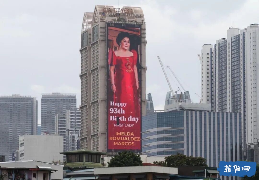 2022年5月,小马科斯赢得大选之际,大马尼拉街头树立的巨幅为伊梅尔达庆祝93岁生日的照片。