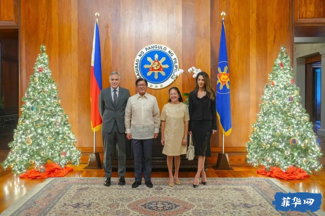 11月14日,小马科斯夫妇与到访的好莱坞明星乔治·克鲁尼夫妇合影。