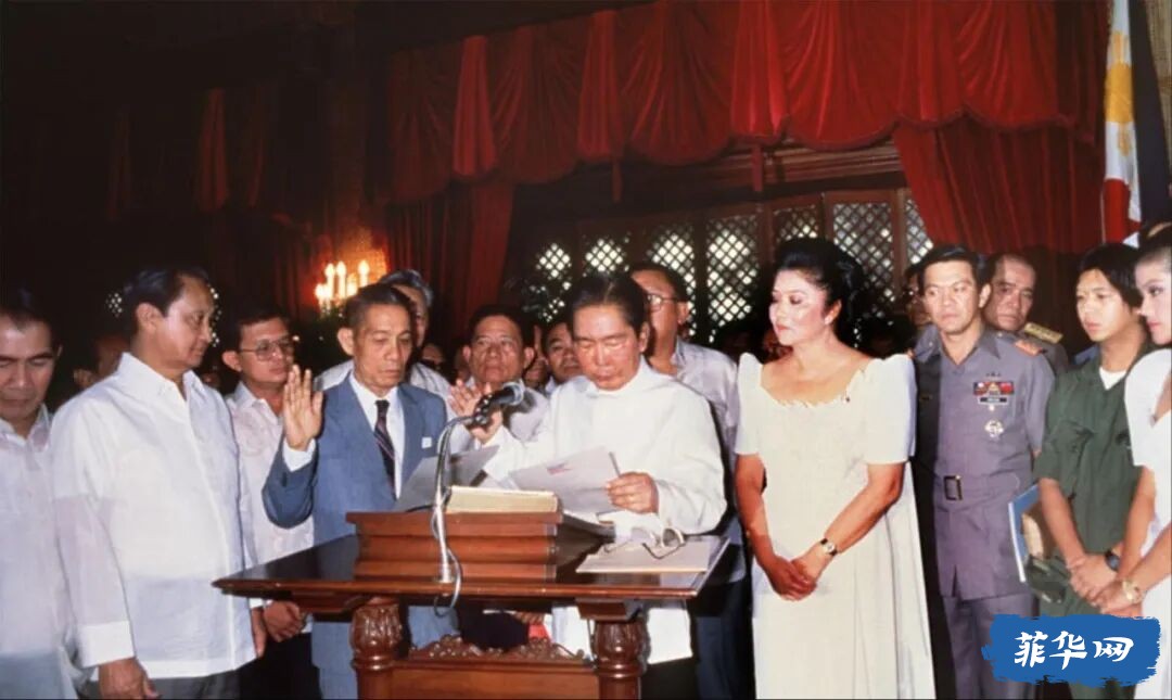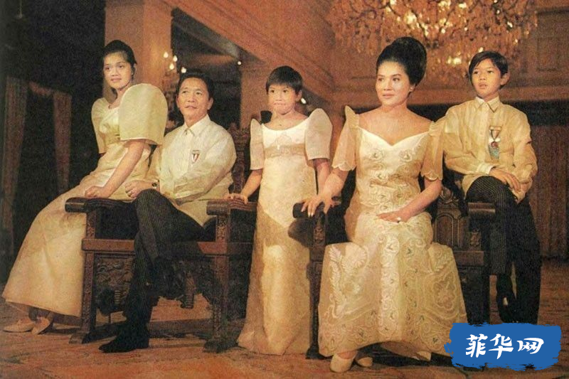1986年2月25日,马科斯在马拉坎南宫宣誓就任菲律宾总统。几分钟后,在得知美国爹无意继续支持时,一家人不得不流亡夏威夷。3年后,马科斯死在了那里。作为父亲最信任的人,一身戎装的小马科斯(右二)那个时刻充当家族的保镖;而此时此刻与他闹翻的姐姐艾米·马科斯(Imee Marcos,最右)正处于她最嫩的年华,39年来装嫩已经成为她的本能。在这张历史性招牌中,伊梅尔达虽然依旧身着最华美的服饰、整理出最庄严的妆容,但仍然难遮她一脸的晦气。或者说,这张图片中充满的失败者的气息。彼时彼刻,恰如此时此刻... ...