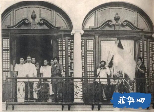 1986年2月25日,马科斯在马拉坎南宫阳台对支持者发布演讲。