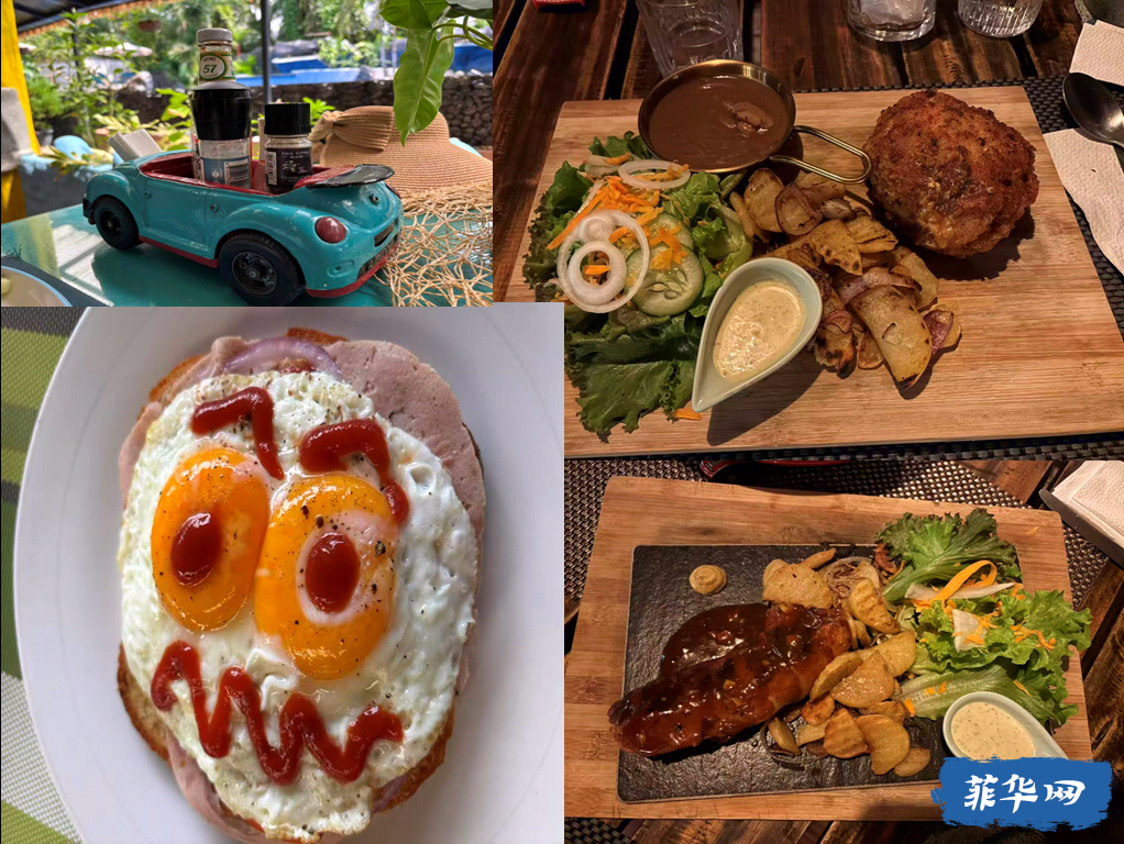 当然了 我来这里是陪客人的 客人白天出去玩儿 我就自己待在酒店~这个酒店有个好处就是包早餐 老板是个瑞士德裔人 除了房间设计了10个不同的风格外 对餐也颇为用心 有点儿那边的风格 也算是把菲律宾这食物匮乏的地方最大化的丰富了~
