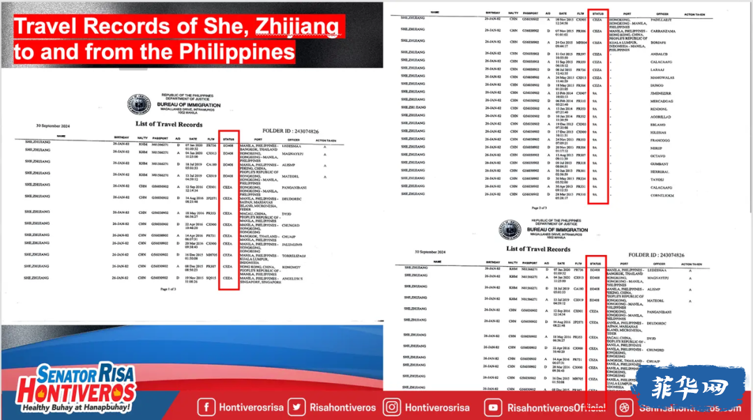 事实上,根据移民局提交给参议员洪蒂维拉斯的旅行记录,因非法赌博集团问题而被关押在泰国的、极具争议的中国籍人士佘智江,就曾经使用CEZA 的签证进入菲律宾。