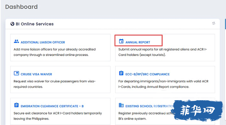 登录成功后,页面中间可以看到 ANNUAL REPORT(年度报到),点击进入。