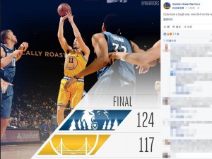 美国职篮NBA明尼苏达灰狼5日让金州勇士追求历史纪录的努力暂时受挫,以124比117让勇士兵败自家主场。(取自Golden State Warriors脸书粉丝专页 facebook.com/warriors)