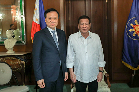 9月16日,菲律宾民主人民力量党主席丶总统杜特地在总统府会见中共中央政治局委员丶重庆市委书记陈敏尔。