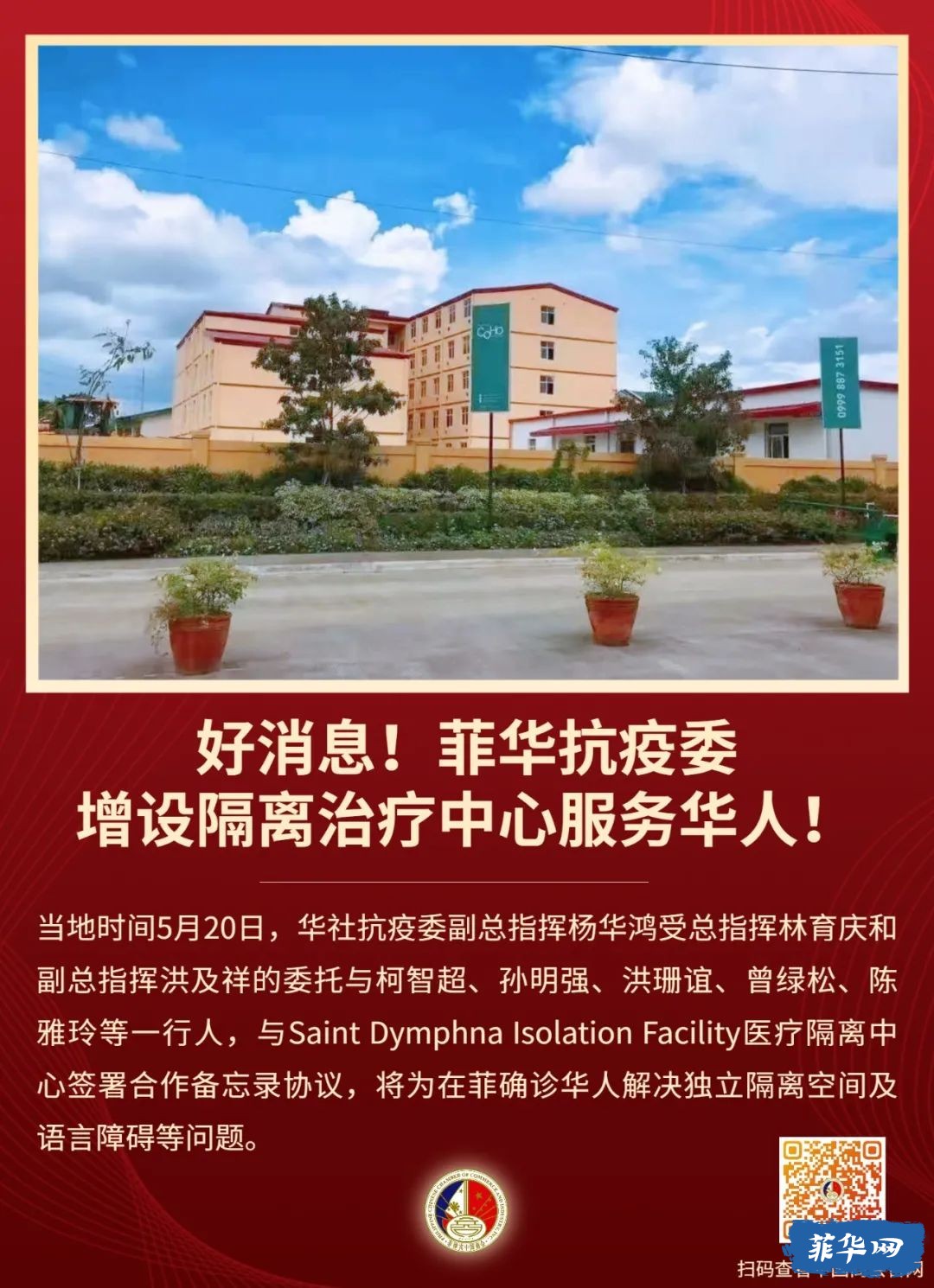 好消息!菲华抗疫委将增设隔离治疗中心服务华人